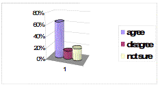 The majority of the respondent 64.5% (49% M- 80% F) agreed, 21% (26% M- 15% F) were not sure, and only 14.5% (19% M- 10% F) disagreed. This implies that the majority of Arab students perceive globalization as Americanization. (fig.5)